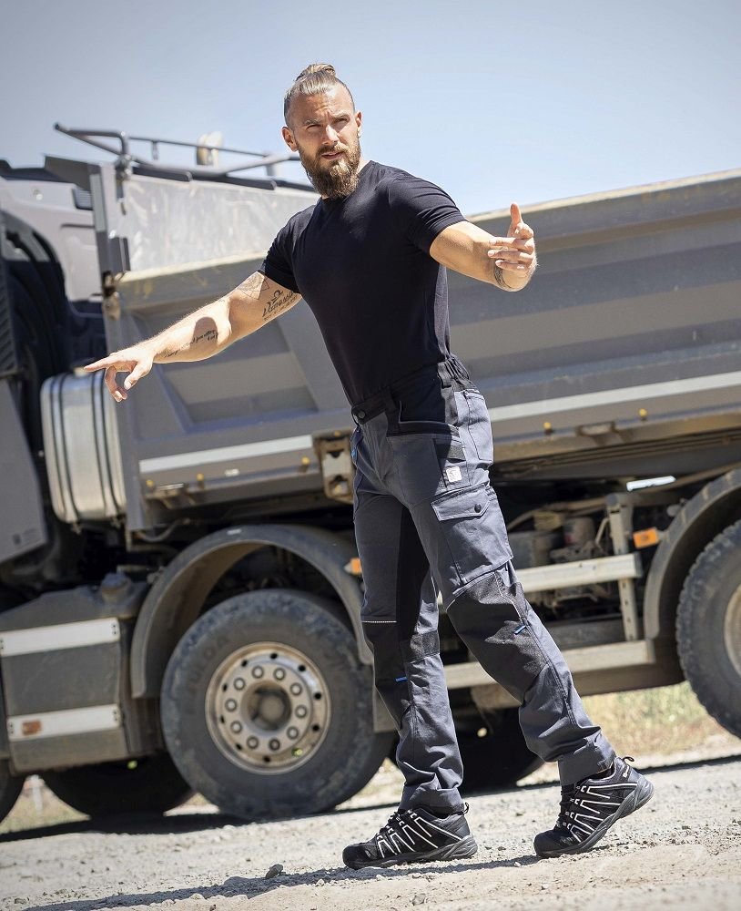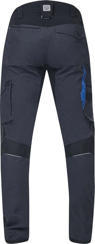 Strečové bavlněné montérkové kalhoty do pasu s kapsou na nákoleníky ze speciálního materiálu Amalytton®, který zajišťuje zvýšenou pevnost a odolnost bavlněné tkaniny při zachování komfortu elasticity. Na exponovaných partiích je použitý extra odolný super elastický materiál Tabiflex®. Kalhoty mají vysoce ergonomický a funkční střih SLIM FIT, který zvýrazňuje siluetu. Oblast kolen je zdvojená odolným materiálem Oxford s vodoodpudivou úpravou a vybavená kapsou na nákoleníky, pružný pasový límec spolu se skrytým zadním dvojitým poutkem pro pohodlné usazení opasku, D kroužek na karabinu, řada praktických kapes. Zvýšenou viditelnost uživatele zajišťují reflexní pásky umístěné na předním i zadním dílu a hi-vis doplňky. Kalhoty umožňují snadné prodloužení délky o 5 cm. Materiál: 98% bavlna, 2% elastan, Amalytton®, kanvasová vazba, cca 250 g/m². Ostatní: 65% polyester, 35% bavlna. 100% polyester - Oxford. 88% nylon, 12% spandex, TABIFLEX®.