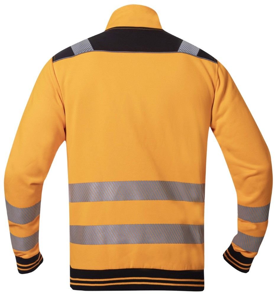 Výstražná mikina se stojáčkem z kolekce SIGNAL. Splňuje parametry oděvu s vysokou viditelností, ergonomický střih, zapínání na zip, zesílené sedlo, tvarující švy na předním dílu, 2 zipové kapsy, pružné úplety na rukávech a spodním lemu mikiny, 2 segmentované reflexní pásky na předním dílu, 2 na zadním dílu, 2 na rukávec, přídavné segmentované pásky na ramenou pro vyšší bezpečnost při práci, reflexní paspule.